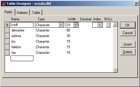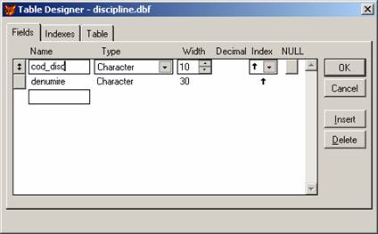 DISCIPLINE.DBF - in care sunt memorate toate disciplinele