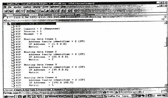 Dupa cum s-a aratat in capitolul 3 "Rutare IP", ruterele trebuie sa construiasca si sa pastreaza o baza de date locala a rutelor (cunoscuta ca tabelul de rutare), care contine toate retelele conectate local precum si retele invatate static sau dinamic (care in acest caz vor fi RIP).Initial, tabelul de rutare include numai articole pentru retelele locale sau direct conectate, dar dupa schimburile dinamice de actualizari RIP cu vecinii, ruterul modifica acest tabel pentru a include rutele indepartate aflate de la vecinii sai. In tabelul de rutare sunt incluse urmatoarele informatii: