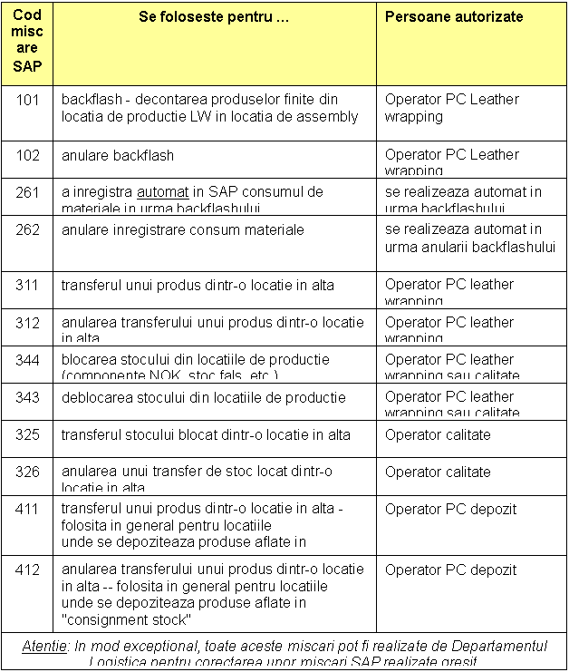 In vederea efectuarii transferurilor dintr-o locatie in alta exista in fiecare sectie o persoana responsabila in efectuarea tranzactiilor, aceasta persoana raspunde de gestionarea incorect facuta in SAP, obligandu-l Isa aibe o atentie maxima la fiecare tranzactie efectuate, deoarece toate tranzactiile facut fiind vizibile in SAP.