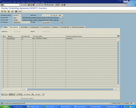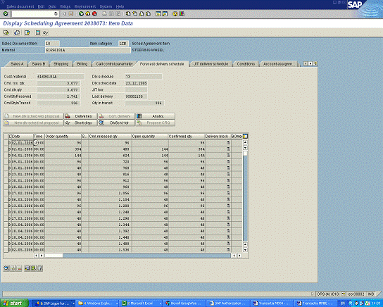 Acum putem vizualiza SCH Agreement. In fereastra open quantity putem vizualiza cantitatea de volane care trebuie sa ajunga in data respective la client.