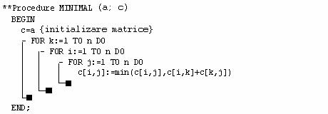 Desigur, in problema atingerii unui nod pornind din alt nod, suntem interesati in existenta drumului si nu ne trebuie lungimea acestuia. Se considera graful G=(V, E) cu n noduri si se considera o matrice P(NxN) care are elementele definite astfel: