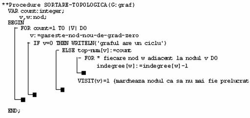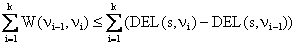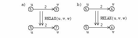 Fie v un nod care poate fi atins din nodul sursa s si fie p=<v0, v1, , vk> drumul cel mai scurt de la nodul v la nodul s unde v0=s si vk=v. Se presupune ca p este un drum simplu astfel incat k£(|V|-1). Se va demonstra prin inductie dupa i= 0, 1, , k ca vom avea d(vi)=DEL(s,vi) dupa cea de a i-a trecere asupra muchiilor din graful G si in plus aceasta egalitate se pastreaza si dupa aceasta trecere. Deoarece exista (|V|-1) astfel de treceri rezulta ca afirmatia este suficienata pentru a demonstra lema.