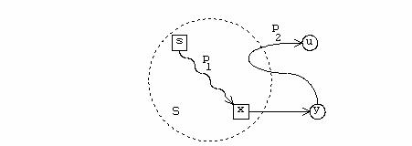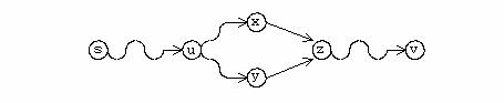 In aceasta figura nodul y este primul nod de pe drumul ce nu este in multimea (VS) si xIS este predecesorul lui y, (x si y sunt distincte, dar putem avea x=s sau y=u).