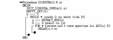 Algoritmul DIJKSTRA prezinta anumite similaritati atat cu algoritmul de parcurgere in latime cat si cu algoritmul lui PRIM care calculeaza arborele de acoperire minima.
