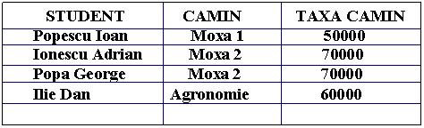 - tabela - celula - zona de celula - depen- denta functionala - cheie primara secundara |