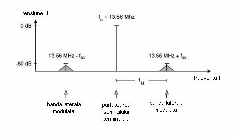 Cum era de asteptat datorita gradului scazut de cuplaj intre bobine, variatiile de tensiune induse in terminal de modulatia de sarcina sunt foarte mici.In practica amplitudinea semnalului util este de cativa milivolti.Aceasta poate sa fie detectata folosind circuite sofisticate, de vreme ce este acoperita de catre semnalul semnificativ mai mare(in jur de 80 dB) emis de terminal.Totusi daca o frecventa subpurtatoare este folosita cu o frecventa fs, semnalul de date receptionat apare in terminal ca doua benzi laterale a frecventei fcfs .Acestea pot fi izolate de semnalul terminalului semnificativ mai mare prin filtrare cu un FTB si apoi amplificate.