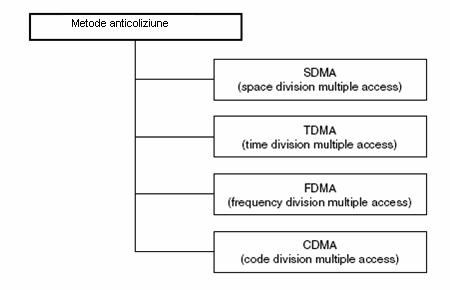 Schimbul de date intre mai multe unitati mobile si statia de baza este o situatie des intalnita in telecomunicatii, situatie care se refera la "accesul multiplu" .Un exemplu tipic este o retea de telefonie mobila, in care toti utilizatorii localizati intr-o anumita celula radio acceseaza simultan o singura statie de baza.Numeroase metode au fost dezvoltate pentru a permite semnalelor utilizatorilor individuali sa fie distinse intre ele.Aceste metode de anticoliziune pot fi clasificate in 4 tipuri ca in figura: