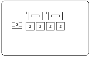 Fig 8 Dispunerea componentelor cuplajului pentru un smart card fara contact: (1)bobine de cuplaj in corpul cardului, (2)suprafete capacitive de cuplaj in corpul cardului si (3) set de contacte pentru cip