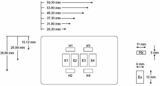 Fig 9 Dispunerea componentelor cuplajului intr-un terminal pentru un smart card fara contact: (4)bobine de cuplaj din terminal, (5)suprafete capacitive de cuplaj din terminal