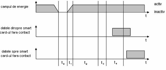 Fig.14 Diagrama de timp pentru transmisia de date cu un smart card fara contact conform ISO/IEC 1056Aici to≥8ms, t1≤0.2ms, t2=8ms, t3=2ms si t4≤30ms