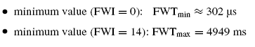 Valoarea FWI este intre 0 si 14, cu 15 fiind rezervat pentru o utilizare ulterioara (RFU).Urmatoarele valori minime si maxime pentru secventa timpului de asteptare pot fi calculate folosind formula :