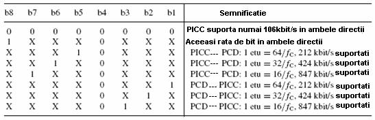 Tabel 18 Ratele de bit suportate de card.Celelalte valori sunt rezervate pentru utilizari ulterioare(RFU)