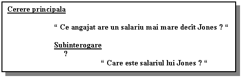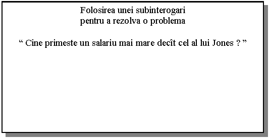 Sa presupunem ca doriti sa scrieti o interogare pentru a afla cine cistiga un salariu mai mare decit salariul lui Jones.