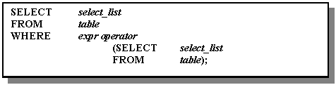 O instructiune SELECT poate fi considerata ca un bloc de cereri. Exemplul de mai sus afiseaza angajatii al caror post este acelasi cu cel al angajatului cu numarul 7369 si a caror salariu este mai mare decit cel al angajatului 7876.