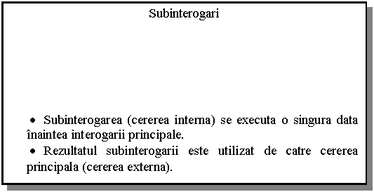 Nota: Interogarile exterioare si incluse pot prelua datele din tabele diferite.