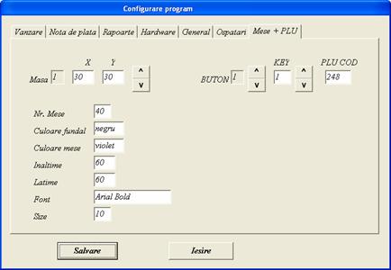 Din utilitarul 'Configurare.exe' se alege optiunea 'Mese+PLU' shi va aparea fereastra de mai jos :