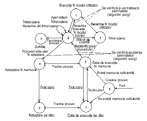 algoritmul psig /* tratarea semnalelor dupa recunoasterea existentei lor*/ intrari: niciuna iesiri: niciuna if (semnalul este de tipul celor pentru care sistemul trebuie sa creeze o imagine a procesului pentru depanare) apeleaza imediat algoritmul exit; } |
