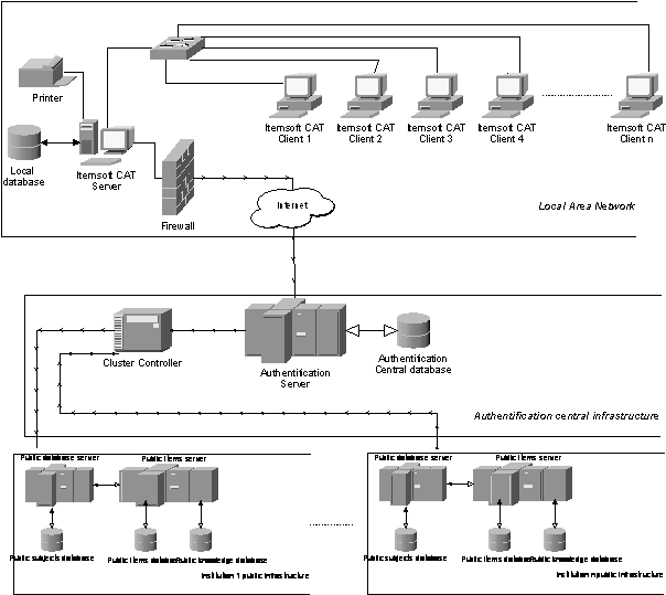 Infrastructura de autentificare contine un server specializat, intretinut de o alta institutie prin care toti utilizatorii sistemului se autentifica si dobandesc drepturi specifice de acces la bazele de date sau la diferite niveluri de competente. Conexiunea este securizata si se realizeaza prin Internet.