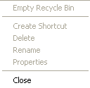 Meniul File al aplicatiei Recycle Bin ofera posibilitatea de a