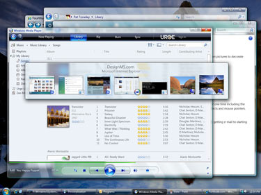 Cu Aero, Windows Flip 3D creeaza o vizualizare a ferestrelor