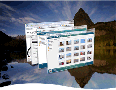 Doua caracteristici captivante noi din Aero, Windows Flip si Windows Flip 3D, ofera o modalitate noua de a administra cu incredere ferestrele de pe desktop, pentru a le putea vedea intr-un mod uimitor, dar convenabil. Dincolo de noile grafice si de stralucirea vizuala, experienta desktop Windows Aero lucreaza la fel de elegant si de profesional cum arata, cu o administrare mai usoara a ferestrelor, stabilitate crescuta a graficelor si efecte vizuale fara intreruperi. Toate acestea va ofera o experienta simpla, confortabila si de inalta calitate.