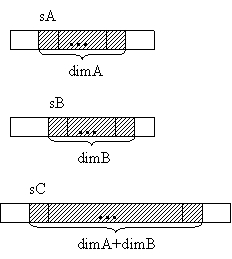 procedure Merge (dimA, dimB, dimC, sA, sB, sC, A, B, C)