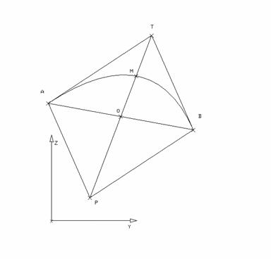 Definind punctele A si B ca puncte de capat a arcului, paralelogramul PATB poate fi creat utilizand tangentele in aceste puncte.