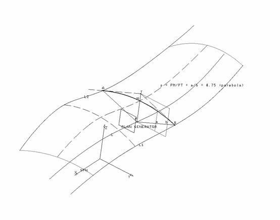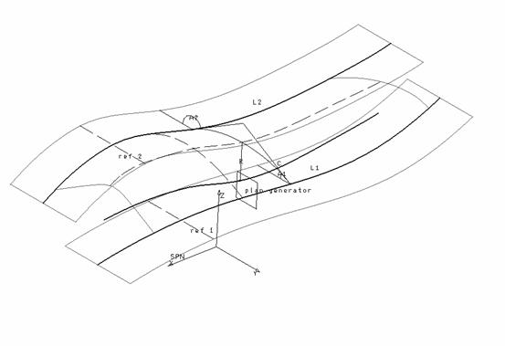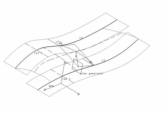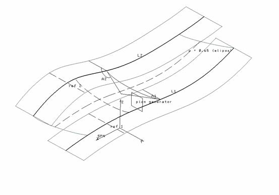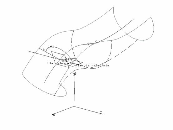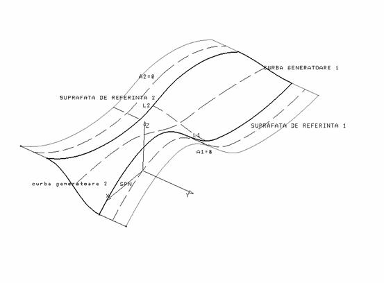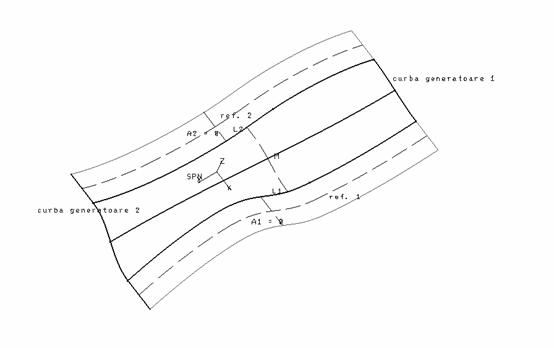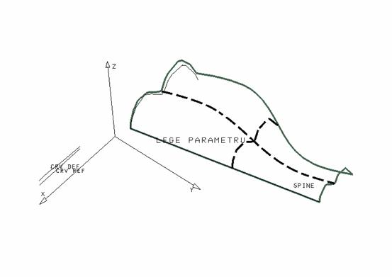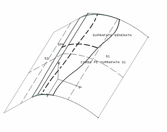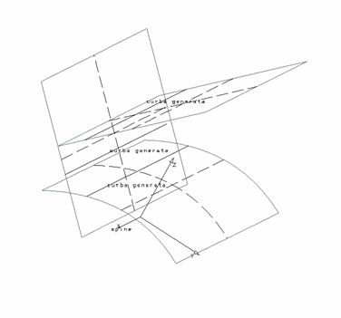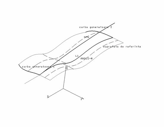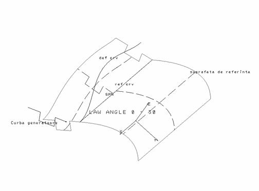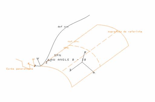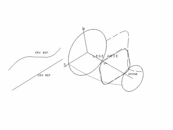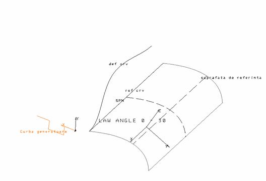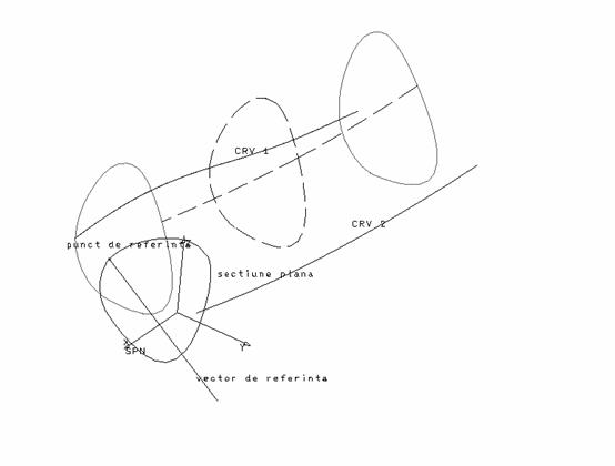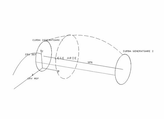 Curba generatoare se selecteaza prima data si se pozitioneaza in concordanta cu sistemul de axe din planul sau. Urmatorul element selectat este SPINE - ul, iar la nevoie se poate selecta o lege unghiulara sau scalara sau o curba de centru (articolul CENTER) ce da posibilitatea operatorului sa specifice evolutia sistemului de axe mobil de-a lungul SPINE - ului. Suprafata se construieste prin concidenta sistemului de axe a curbei generatoare cu sistemul de axe mobil.