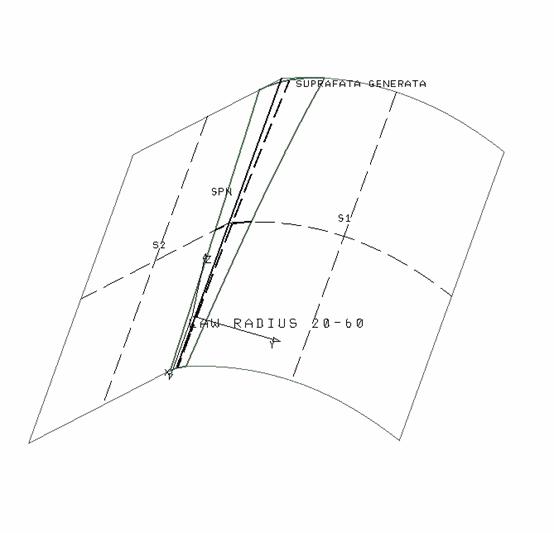 CAZ 2 : crearea unui filet circular intre o curba sau o linie ce se afla pe o suprafata S1 si o suprafata S2 , de-a lungul SPINE - ului.