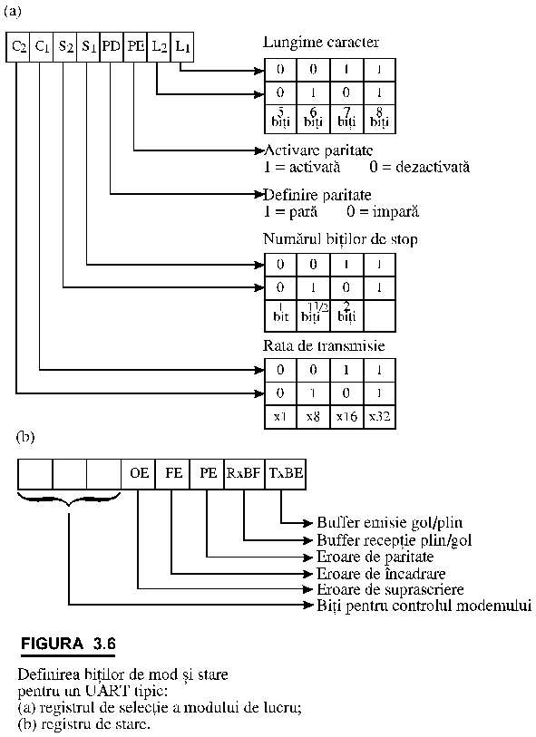 Setarea acestor indicatori nu inhiba functionarea UART‑ului ci numai semnaleaza unitatii de control ca a fost detectata o eroare.