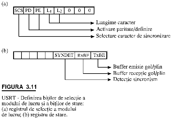 Unitatea de control determina starea curenta a USRT prin citirea continutului registrului de stare si testarea unor biti specifici cum ar fi cei din figura 3.11.