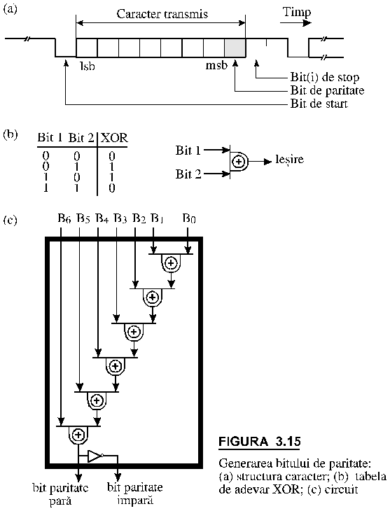 In figura 3.15 (b) este reprezentat un circuit de calcul al bitului de paritate.
