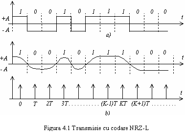 Cel mai simplu cod - codul NRZ (Non-Return to Zero) este compus din elemente binare de semnal, de aceeasi durata T, de forma reprezentata in figura 4.1a.