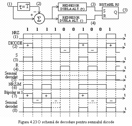deoarece bitul 1 fiind reprezentat prin nivelul +A, iar bitul 0 prin -A, ele satisfac: