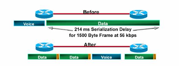Este o metoda proprie routerelor pentru a trata conexiunile de mica viteza.Pachetele de orice marime ajung la interfetele routerului; unele dintre acestea au marimea 40 de octeti, in timp ce altele au 1500 de octeti.Pachetele cu informatie vocala sunt in general cele de marime mica.Pe o conexiune de viteza mica, nu se doreste ca un pachet cu informatie vocala sa se opreasca in spatele unui pachet de 1500 de octeti care face parte dintr-un transfer de fisier-intarzierea pachetelor VoIP pot reduce calitatea apelului.Activand aceasta functie intr-un router inseamna ca acel router va fragmenta pachetele mari, si va intercala pachetele mici printre fracmentele mari, care sunt reansamblate la destinatie.Aceasta intercalare evita intarzieri excesive pentru pachetele de dimensiuni reduse.