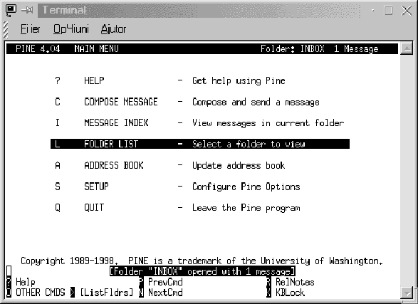 FIG 11.8. Posta electronica PINE