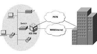 Pentru aceasta se foloseste - la furnizor - un "server de convergenta media 7830" de la Cisco(Cisco MCS 7830), pe care ruleaza aplicatia Cisco CallManager 3.2, iar la beneficiar - in functie de solutia aleasa, urmatoarele echipamente/aplicatii: