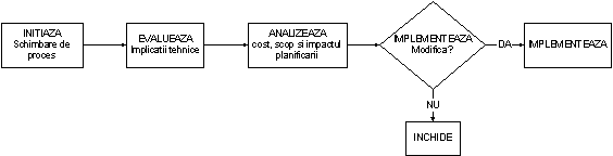 Oricare dintre cele doua parti pot initia o modificare a configuratiei curente. Managerul de proiect va evalua impactul acestei modificari din punct de vedere tehnic, al resurselor implicate si al logicii de desfasurare a lucrarilor. In cazul in care cele doua parti sunt de acord cu implicatiile modificarii, aceasta va intra in vigoare si modificarea va fi documentata.