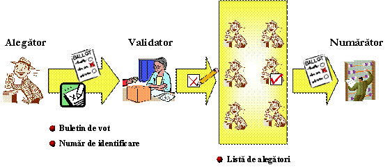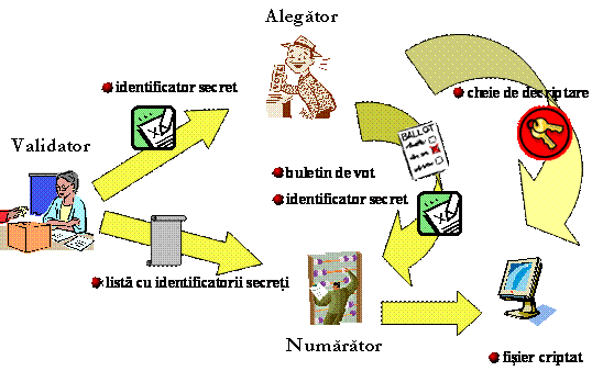 il trimite numaratorului. Numaratorul verifica semnatura de pe votul criptat.