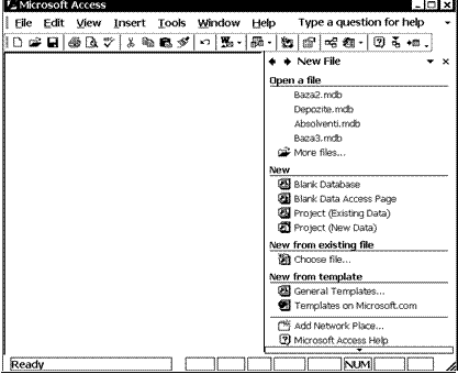 1. in Task Pane, clic pe Blank Database (baza de date goala);