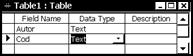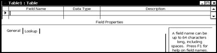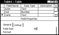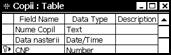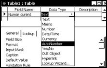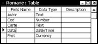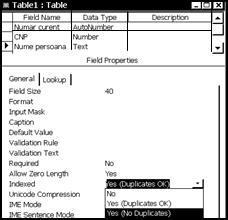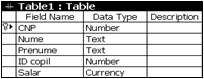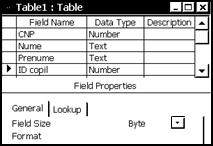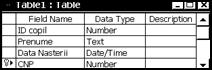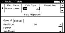 Se deschide o fereastra in care se introduce structura tabelului (adica numele campurilor si proprietatile campurilor);