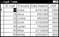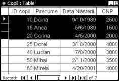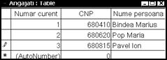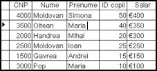 Un tabel se compune din randuri pe care le vom numi inregistrari (records).