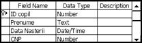 9. pe coloana Data Type, nu mai dati clic pe sageata ▼ lasati Text;