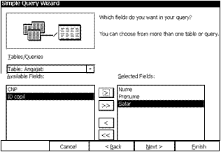 - inchideti fereastra Angajati Query cu clic pe butonul x