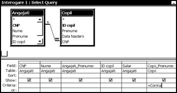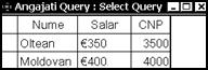 - in fereastra bazei de date, clic pe Angajati Query si clic pe butonul Open;