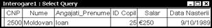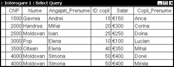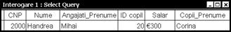 2. clic pe numele interogarii (clic pe Angajati Query); 3. clic pe butonul Open;