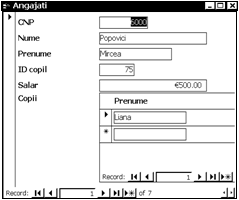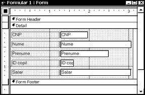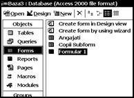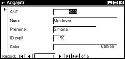 1. in fereastra bazei de date, in partea stanga, dati un clic pe Forms; 2. clic pe numele formularului (clic pe Angajati);