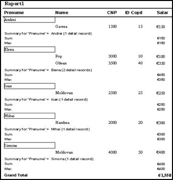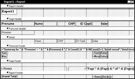 4. inchideti fereastra Raport1 cu clic pe butonul x