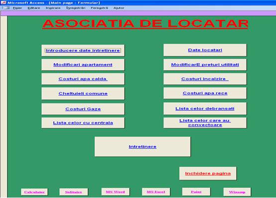 "Intretinere" - Constitue interfata grafica in momentul afisarii costurilor pentru intretinere ce le are fiecare apartament in parte si de asemenea, o pagina cu aceste costuri, ce poate fi imprimata.