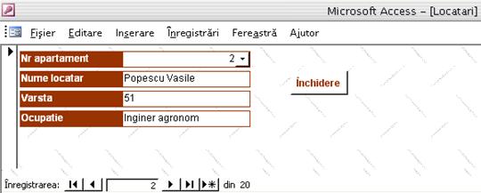 Apasand click pe acest buton se deschide o fereastra cu ajutorul careia se introduc datele furnizate de locatari.